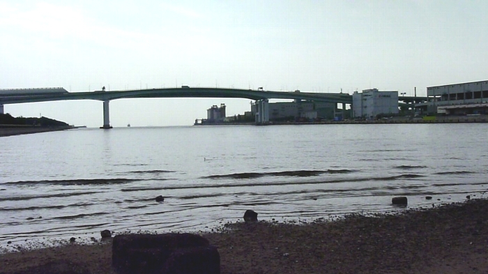 河口から阪神高速5号湾岸線 東神戸大橋を望む