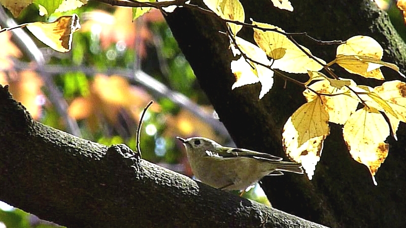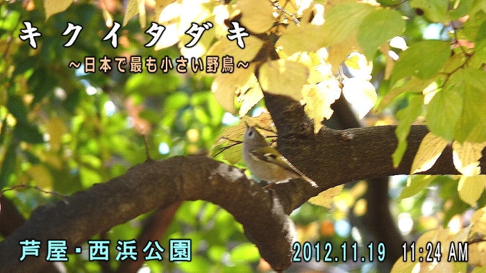 | 日本で最も小さい野鳥といわれているキクイタダキを初めて見ました。頭上で、か細い鳴き声がするので、見上げると木の葉が揺らいでいる陰で鳥が動いているのが見えました。これまで見たことがないほど小さい姿に驚きました。それがキクイタダキでした。いままで見逃していたのか知れませんが、西山公園で見られたとはラッキーでした。 カメラを振り回した画面で見苦しいムービーになりました。私の腕が未熟ということがありますが、とにかく、体が小さい上に、枝から枝へ、葉っぱの陰に見え隠れし、とにかくじっとしないで動きまわる撮影困難な鳥です。 キクイタダキという名前もたいそう変わっていますが、それなりの理由があります。頭頂にその答えがありますが、今回撮影できませんでした。 Yachoo ! オンライン野鳥図鑑 http://www.yachoo.org/book/view/kikuitadaki BIRD WORLD http://contents.birdworld.jp/illustrated/sequence/ki/kikuitadaki/index.htm など参考にしてください。 |